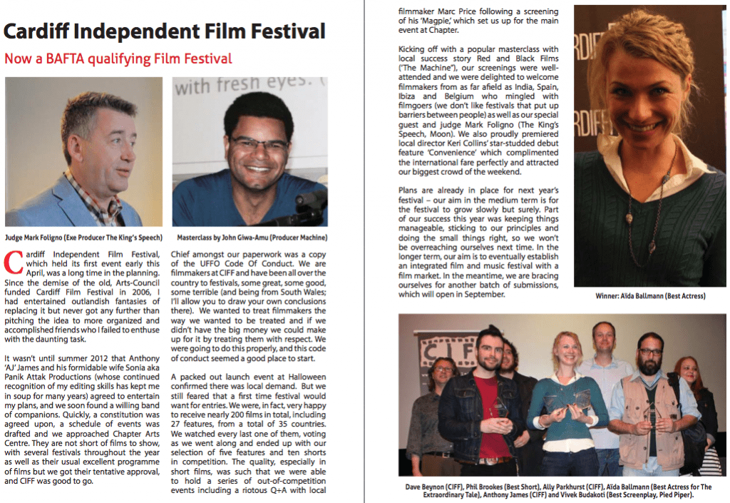 Und das Universal Film Magazine kommentiert: „Das Cardiff Independent Film Festival ist jetzt ein BAFTA-qualifizierendes Filmfestival.“